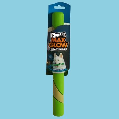 De Chuckit Max Glow Ultra Fetchstick Groen is apporteerspeelgoed met glow in de dark formule. De stick is gemaakt van fotoluminescent materiaal, dat goed licht geeft in het donker en oplaadt onder elke felle lichtbron. Zo heb je dag en nacht plezier van de Chuckit Max Glow Fetchstick! De stick is gemaakt van hoogwaardig en duurzaam rubber dat erg zacht is voor de mond. Hierdoor blijft het lang heel, ook als er zachtjes op gekauwd wordt.