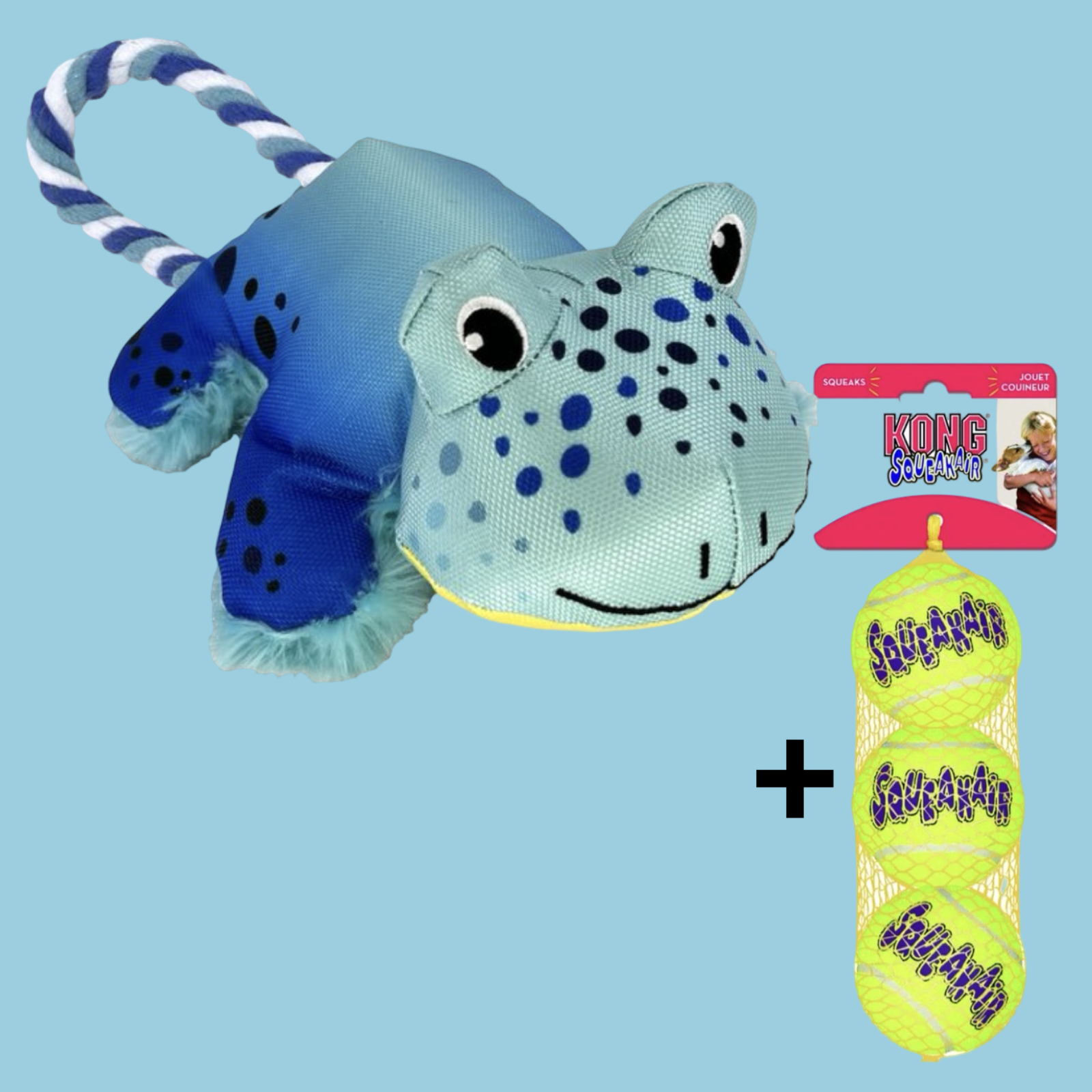 Combideal Kong Cozie Tuggz Kikker + Squeakairs Tennisballen