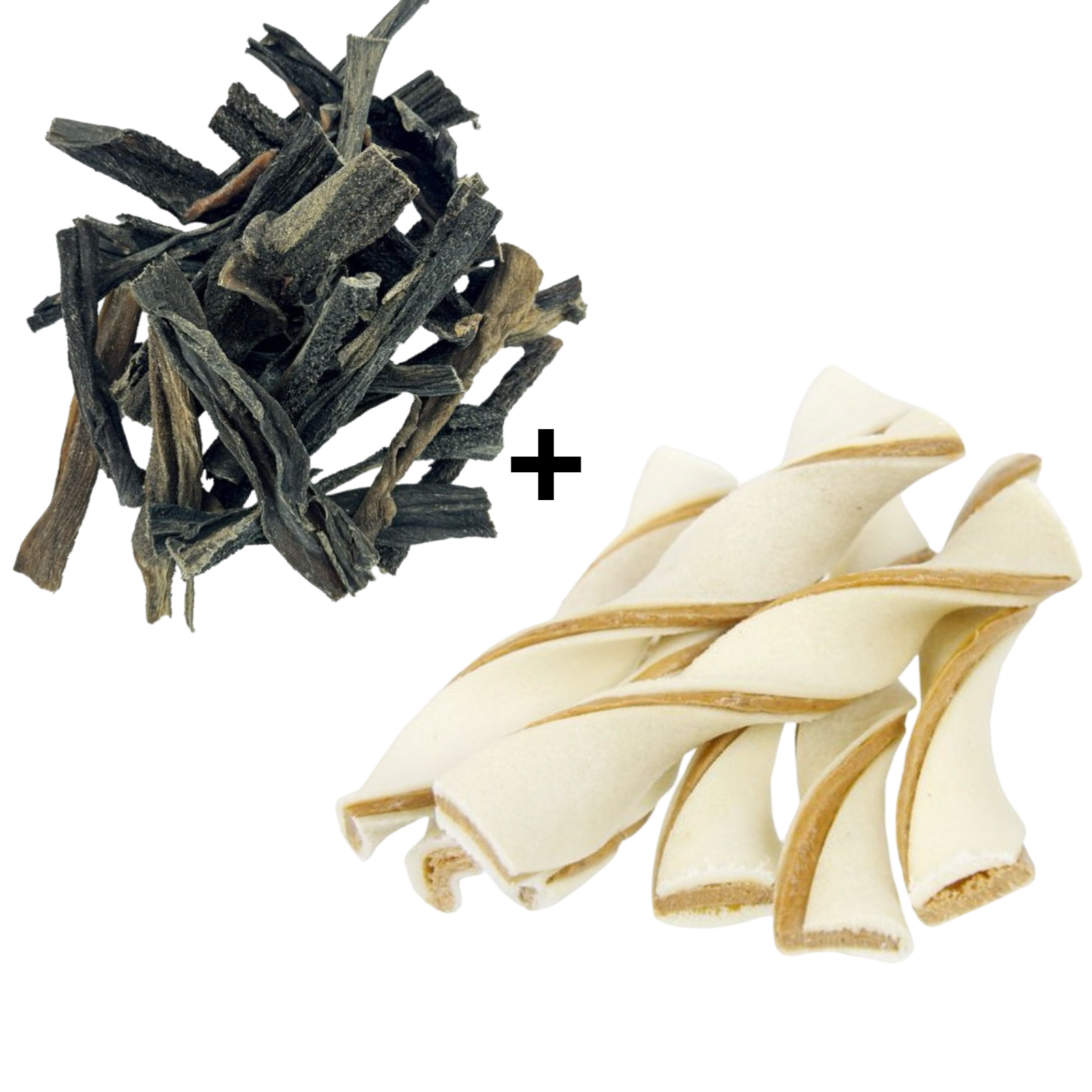 Combideal Petsnack - 20 Zalmwokkels 12 CM+ 1 KG Pens Hondensnack