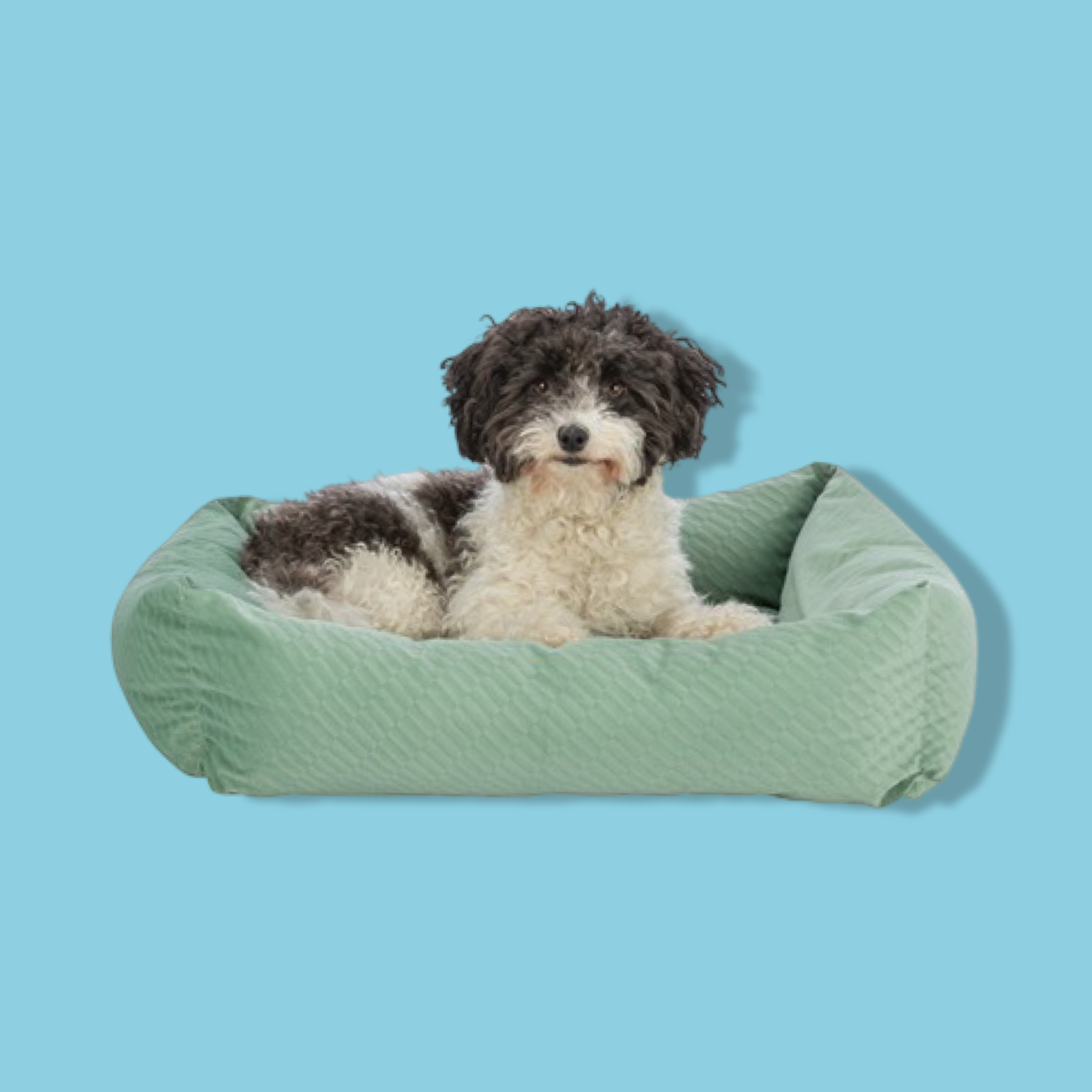 De Trixie Hondenmand Alena Hoekig Saliegroen is een origineel hondenbed van lichte velours stof met vast geïntegreerd kussen en slipvaste onderkant.