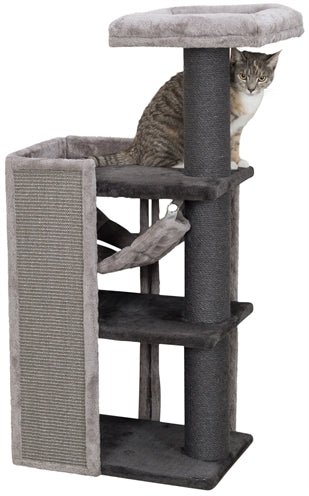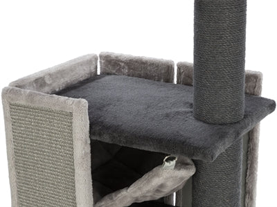De Trixie Krabpaal Arianna Grijs 52X40X112 cm is een mooie krabpaal in strak ontwerp met sisal en verschillende ligplekken. Krabben is een natuurlijke behoefte voor de kat. Hiermee markeert de kat zijn territorium en verzorgt hij zijn nagels. Voorkom dat jouw kat krabt aan meubilair met voldoende krabmogelijkheden, zoals deze mooie krabpaal van Trixie. Deze toren heeft een groot krabvlak van sisal. Deze paal bevat een mandje met bekleed ligplateau, schuilplaatsen binnenin en een verwijderbare hangmat. Deze mooie paal hoort thuis in elk kattenhuishouden.