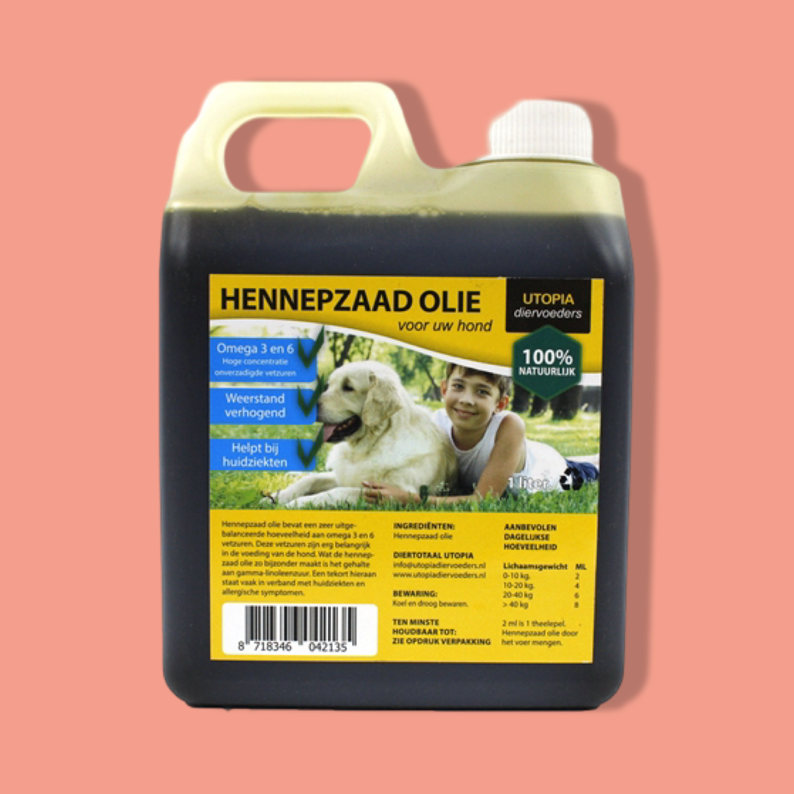 Hennepzaad olie bevat een zeer uitgebalanceerde hoeveelheid aan omega 3 en 6 vetzuren. Deze vetzuren zijn erg belangrijk in de voeding van de hond. Wat hennepzaad olie zo bijzonder maakt is het gehalte aan gamma-linoleenzuur. Een tekort hieraan staat vaak in verband met huidziekten en allergische symptomen.