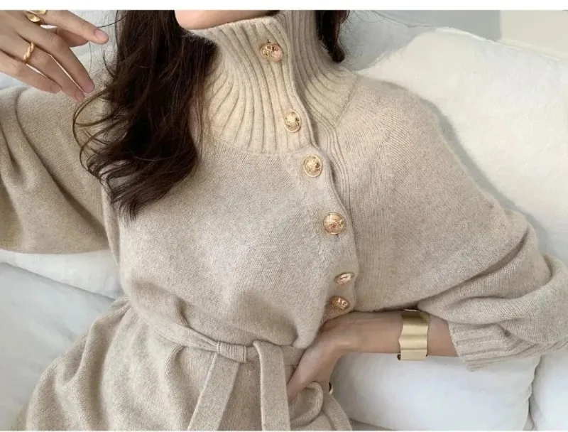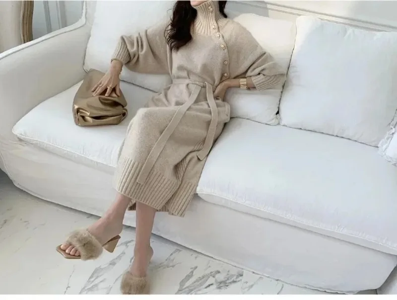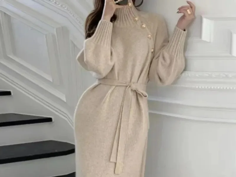 • Materiaal: Wollen Kleding: Gemaakt van premium wol, deze jurk biedt warmte en duurzaamheid voor de koelere maanden.